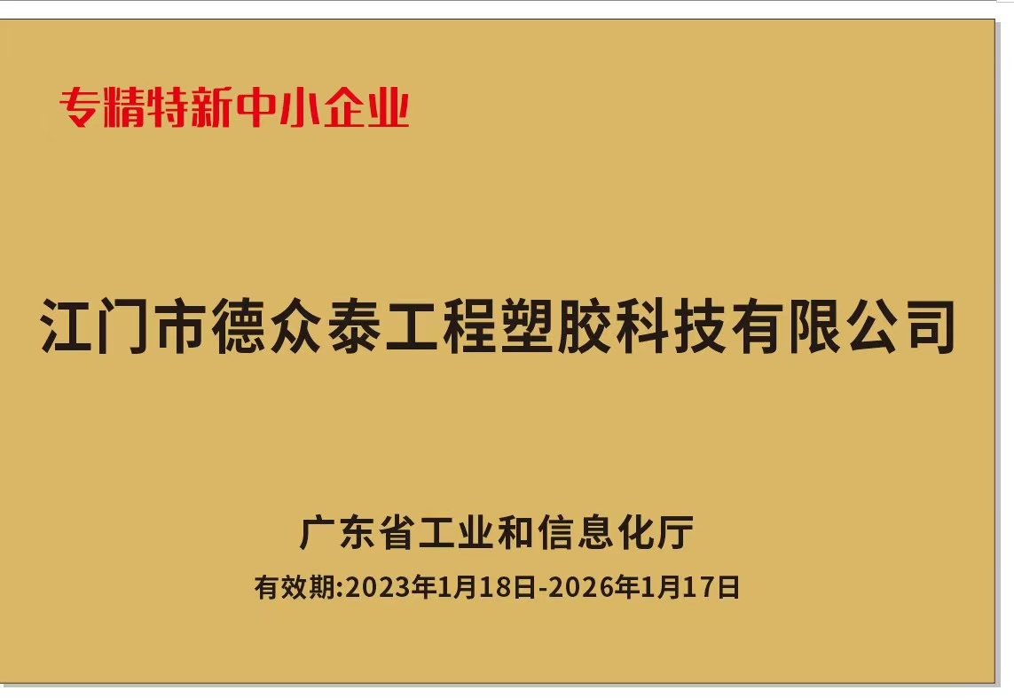 熱烈祝賀江門(mén)市德眾泰工程塑膠科技有限公司通過(guò)“廣東省專(zhuān)精特新"企業(yè)認定。